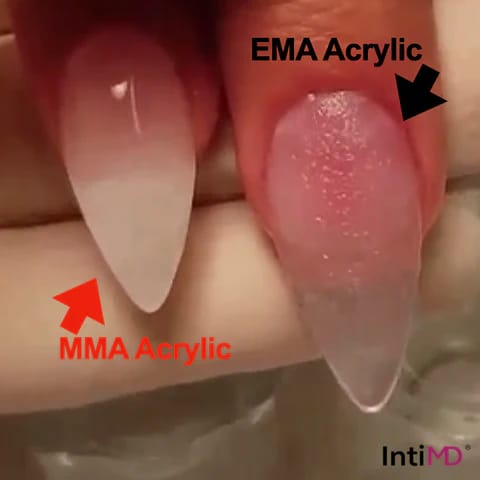 MMA (Methyl Methacrylate) is a highly toxic chemical that can cause permanent nail deformity, severe allergic reactions, chemical burns on the nail bed, asthma-like symptoms, headaches, dizziness, and respiratory irritation.