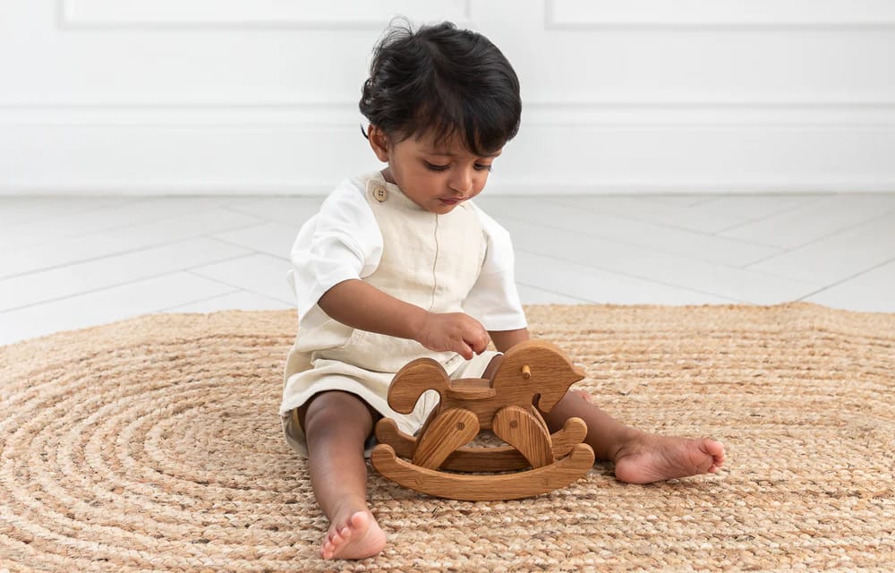 For safer toy options, it is better to consider these materials: wood, bamboo, silicone over plastic, and good cotton/fibres.